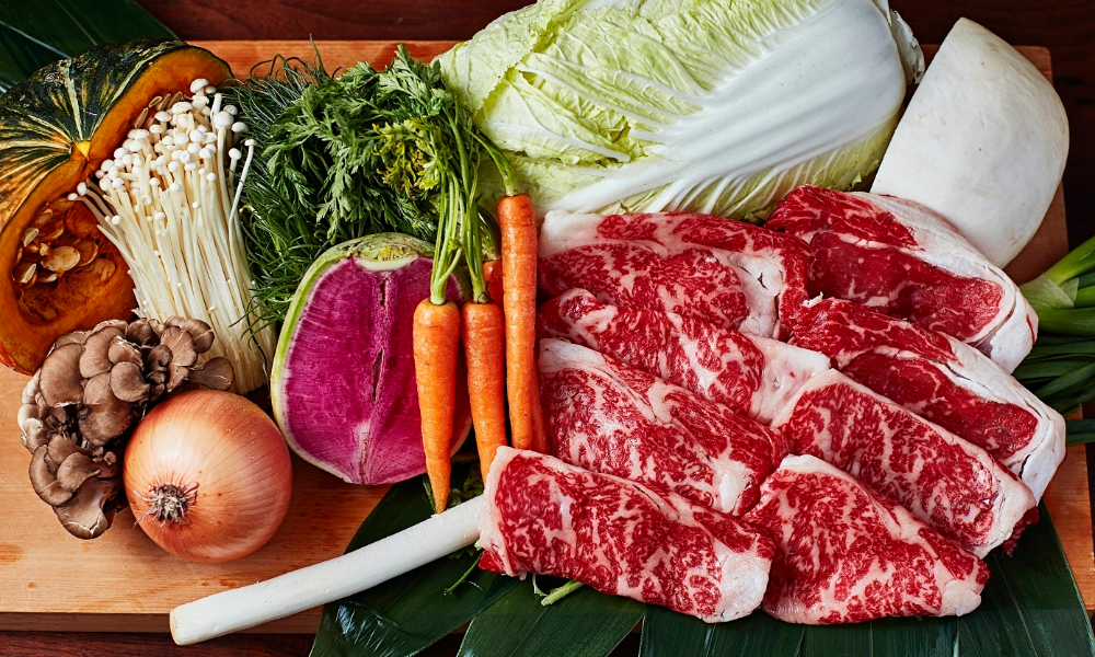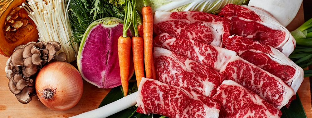 With sumptuous shabushabu hot pot filled with meat of choosen origins and select vegetables,